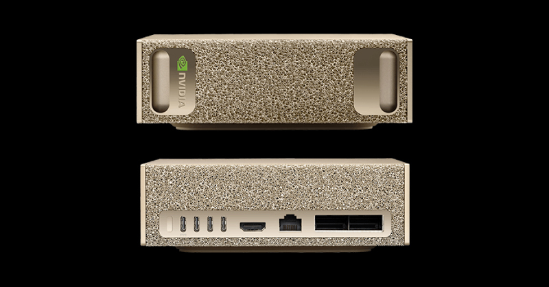 Để tôn vinh sức mạnh hiệu năng của mình, NVIDIA DGX Spark sở hữu khung máy hoàn toàn bằng vàng với lưới tản nhiệt ở mặt trước và mặt sau, được mô phỏng theo NVIDIA DGX-1 nguyên bản ra mắt năm 2016.